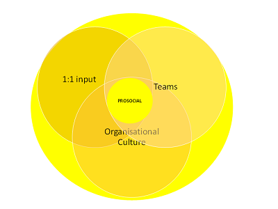 This diagram illustrates how the PROSOCIAL method directly impacts upon and connects the two main arms of the service (1:1 input and Teams), and also influences the wider organisational culture. It balances the needs of the individual, the team, and the wider organisation.